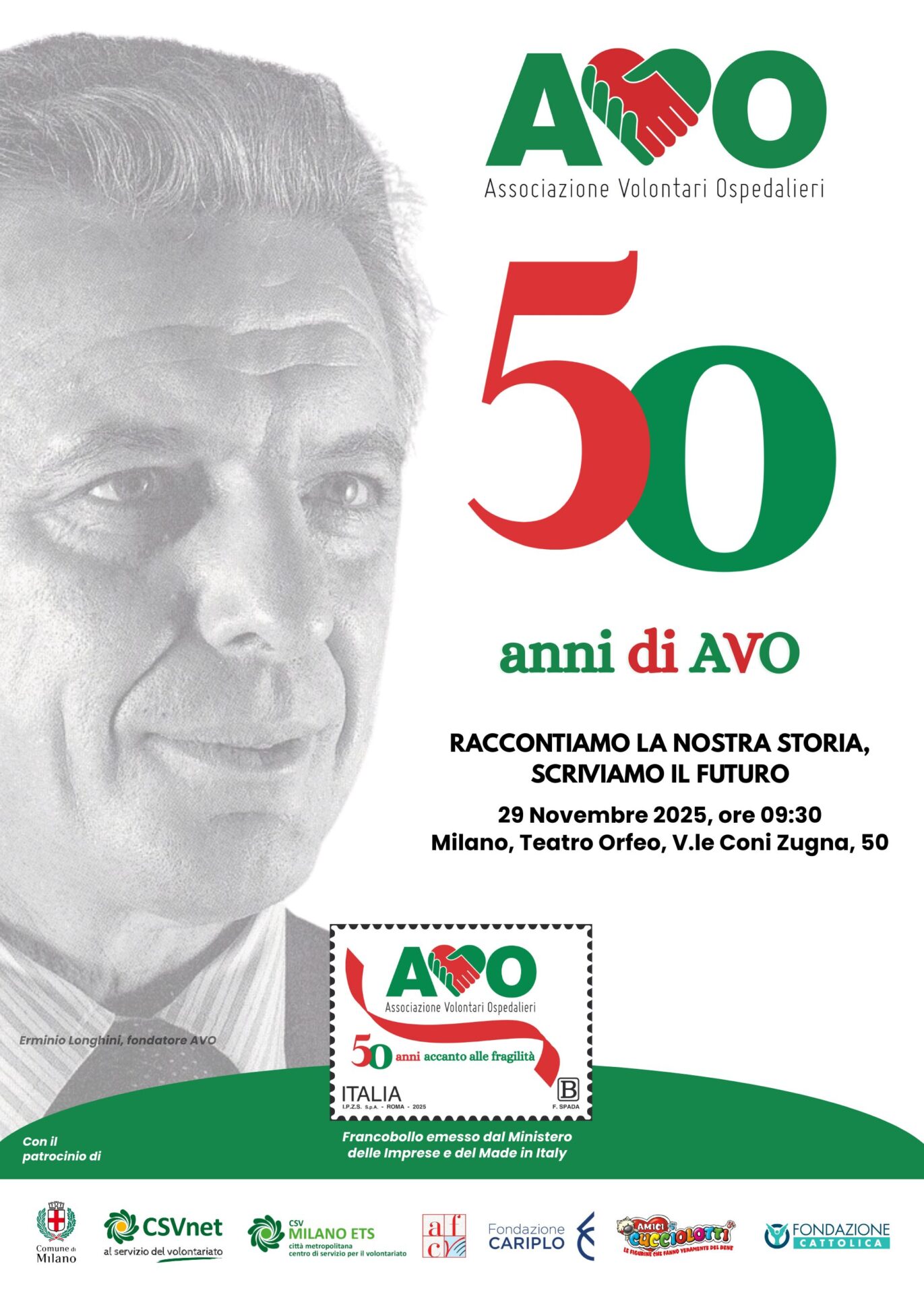 Ma tornando alle celebrazioni per il cinquantesimo, AVO ha scelto come titolo della giornata“Raccontiamo la nostra storia, scriviamo il futuro”: la manifestazione come detto si svolgerà il 29 novembre 2025 al Teatro Orfeo, luogo emblema della comunità e dell’impegno dell’associazione nel corso degli anni.